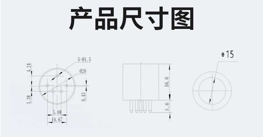 描 述: NDIR 传感器基于比尔-郎伯定律,使用LED 窄带光源以及快速响应光电二极管(PD),结合低功耗电路以及优化的光学系统,满足常规NDIR 红外传感器性能的同时实现超低功耗。